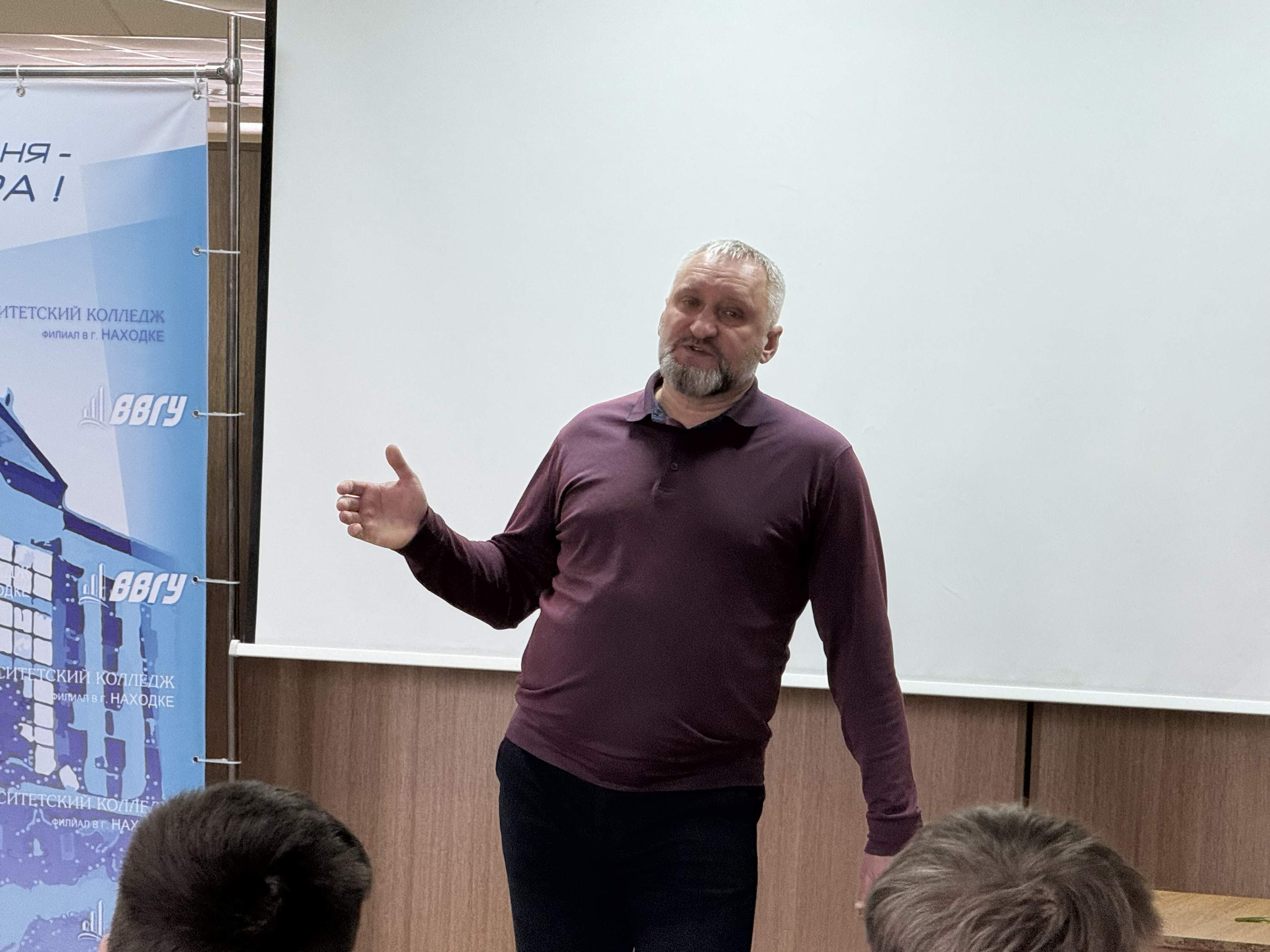 В филиале ВВГУ в г. Находке прошла встреча студентов с капитаном второго ранга войсковой части № 10162 Ершовым Сергеем Александровичем, в которой приняли участие 72 студента.