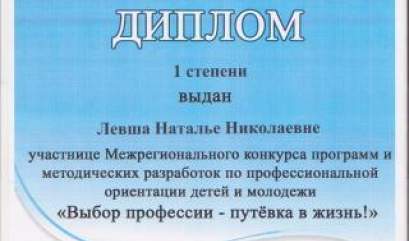 Учитель лицея филиала ФГБОУ ВПО «ВГУЭС» в г. Находке Левша Н. Н. стала дипломантом V Межрегионального...